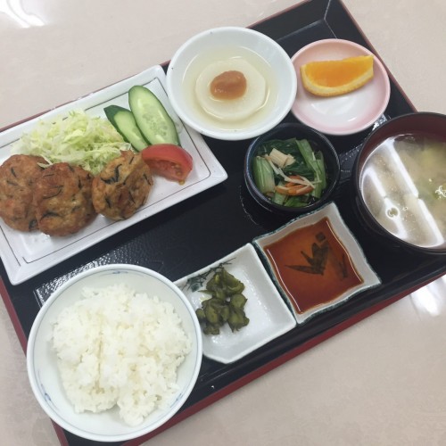 メニューは、豆腐とひじきのさつま揚げ、ふろふき大根、小松菜の和え物、ごはん、味噌汁、オレンジです!